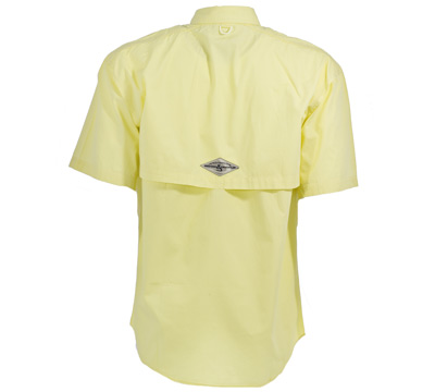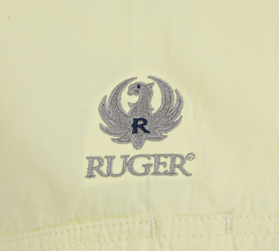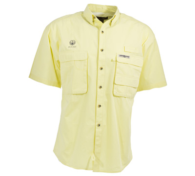 Ruger embroidered Hook & Tackle Men's Gulf Stream short-sleeve fishing shirt. Features include CoolMax® mesh lining, hidden button-down collar, fly rod, utility and sunglass loops, secure front cargo pockets, secure sunglass pocket, embroidered eyelets on left-chest pocket, vented back, sleeves and made from 100% cotton poplin. Made by ADPRO Sports.