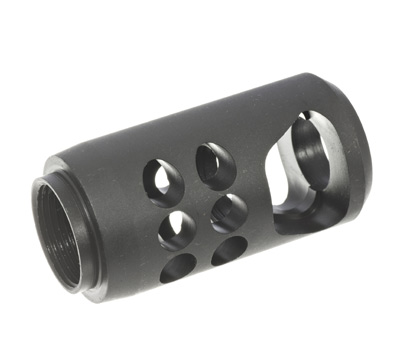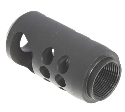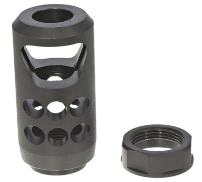 This hybrid muzzle brake reduces recoil, muzzle rise and debris by directing the blast to the sides of the muzzle. It is constructed from alloy steel for strength and durability with a black oxide finish to complement most firearms. It is timed using an external jam nut. This muzzle brake is compatible with Glenfield Rifles chambered in 450 Bushmaster. This Genuine Glenfield Factory Accessory is made in the USA.