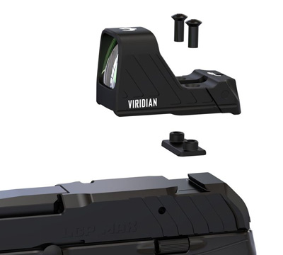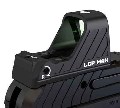 The ViridanRFX1 is the smallest reflex sight on the market and the only optic designed to fit on the LCP MAX. It includes a custom dovetail plate designed specifically for installation on the LCP MAX slide without adapters. The 3 MOA green dot sight’s INSTANT-ON® feature activates with motion and shuts off when still without buttons or delay and provides up to 30,000 hours of battery life. The sight’s machined aluminum housing is engineered for a sleek, low-profile match with the LCP MAX that looks and feels like a factory-installed sight. Weighing just 0.53 oz., the RFX1 is IPX4 water-resistant and shockproof. It comes ready to mount and ships with (1) CR1632 Battery, a rear sight mounting plate, a wrench set and a Quick Start Guide. Made in the USA by Viridian® Weapon Technologies.