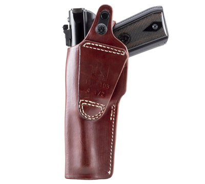 | Purchased this for my MK IV 22/45 Lite. After a little work it fits the gun nice and snug. The problem is when the gun is seated the snaps are over 1/2 inch apart. To make matters worse the snaps are located right over the safety lever which adds more distance. This is a good quality leather holster but dont buy it unless you are prepared for a lot of work. After 4 days of softening and stretching I got the snaps to close. |