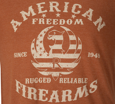 Ruger Freedom Logo branded 60/40 cotton/polyester rust heather t-shirt. Made by TrueTimber.