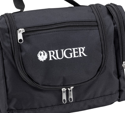 Ruger branded hanging toiletry tote. Features various zippered compartments inside and out to store your toiletries. Durable with an easy to hold top handle. Includes a hanging hook inside to conveniently hang from anywhere. Measure 11" W x 8" H x 3.5" D.