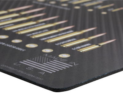 This colorful 12” x 36” rifle cleaning mat displays the most popular rifle cartridges at scale for easy reference. The lightweight, heavy-duty cleaning mat provides a spacious, padded work area for cleaning and maintaining your firearms. The mat is constructed from 1/8" (3mm) vulcanized rubber with a soft heat bonded polyester that protects firearms from scratches. The non-slip textured rubber base protects your work surface from damage and the mat rolls-up for easy storage. The dye-sublimated printing won’t wear or rub off, is solvent and oil resistant and includes the Ruger logo and tagline. To clean your mat, apply mild dish soap, agitate & lather with fingers or rub the top cloth together. Rinse the mat with warm water and air dry. The mat is covered by the manufacturer’s lifetime warranty. Designed and printed in the US by Cerus Gear.