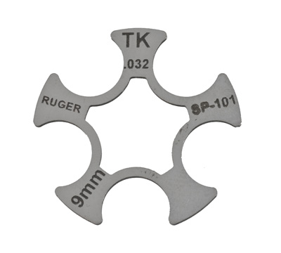 These .032 thick stainless- steel TK™ Custom Moon Clips are faster to use than a speedloader and allow quick and reliable ejection of the fired rounds with a quick reload of all chambers at once. They make it much easier to load a revolver cylinder with all cartridges at one time. They also prevent fumbling and dropping rounds while loading the cylinder with individual rounds and eliminate the need to pick-up a speedloader from the ground after loading the revolver cylinder. The twelve-step manufacturing & inspection process insures the very highest quality moon clips. They are made from rigid steel on state-of-the-art machinery to exacting tolerances of .00001 thousandths of an inch for consistent fit and function and are guaranteed for a lifetime by the manufacturer. Fits the Ruger SP101® chambered in 9mm only. These moon clips fit most 9mm brass and require a mandrel size of .390 (#18741 - sold separately) when installing with the Ruger Moon Clip Loading Tool (#18751 - sold separately). Made in the USA by TK Custom.